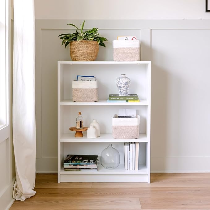 NaturalCozy Storage Cubes 9”x9”x7”Cotton Rope Woven Baskets for Organizing 3-Pack | 9 Inch Cube Storage Bin | Small Basket for Shelf Nursery, Pantry, Decorative Plant, Bathroom Closet, Toy Gift