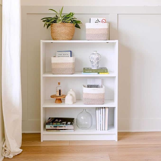 NaturalCozy Storage Cubes 9”x9”x7”Cotton Rope Woven Baskets for Organizing 3-Pack | 9 Inch Cube Storage Bin | Small Basket for Shelf Nursery, Pantry, Decorative Plant, Bathroom Closet, Toy Gift