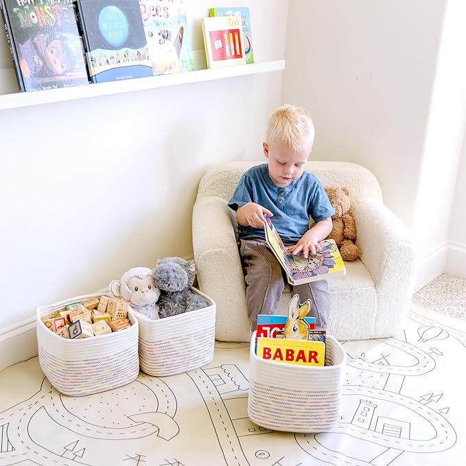• Safe, Natural Cotton Organizer Bins: Crafted from the highest quality material in the market, our storage bins are oh-so-sturdy (and cute) and ready to take on little humans. They’re 100% safe, so you can rest easy if teething toddlers take a nibble.