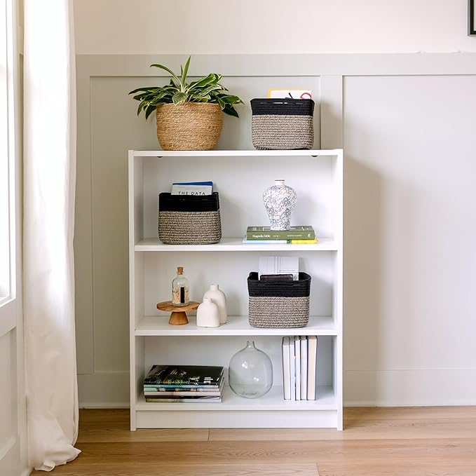 NaturalCozy Storage Cubes 9”x9”x7”Cotton Rope Woven Baskets for Organizing 3-Pack | 9 Inch Cube Storage Bin | Small Basket for Shelf Nursery, Pantry, Decorative Plant, Bathroom Closet, Toy Gift