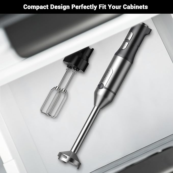 • Complete Kitchen Accessories Included: Your package comes with a snap-on Blending attachment, a twist-and-lock Chopper featuring a removable blade, and a pair of Egg Beaters. The versatile chopper doubles as a mini food processor, ensuring your kitchen tasks are both enjoyable and effortless with all the essential accessories included.