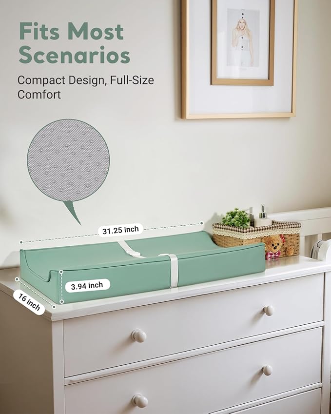 • Large Size & Easy Maintenance: Generous 31”x16” size accommodates newborns to toddlers. Replaceable cover and waterproof core ensure hassle-free cleaning for busy parents