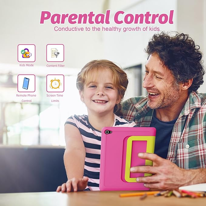 • 【Shockproof Protective Case and Stand】 The Android 14 kids tablet is equipped with a durable shockproof protective case that provides better safety than ordinary silicone cases. The case features a built-in stable stand for easy use, allowing kids to enjoy their favorite content comfortably while keeping their hands free.