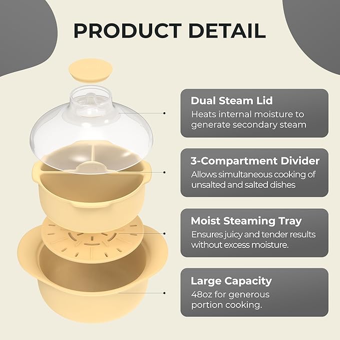 • Ready in 3 Minutes or Less: Ditch the stove! Use as a microwave steamer for vegetables, proteins, or snacks for convenient, fuss-free meals, even on your busiest days