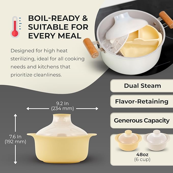 • Preserves Nutrients & Flavor: Steam like a pro! Our clay-pot-inspired silicone steamer locks in vitamins and natural tastes without added water, creating tender, wholesome meals perfect for little ones and health-focused families