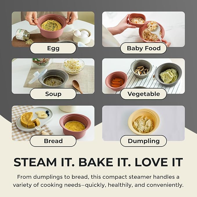• From Purees to Family Feasts: One pot does it all! Prepare baby food, steam dumplings, or bake banana bread - all in a compact, stylish microwave steamer bowl that fits any kitchen (and comes in trendy colors!)