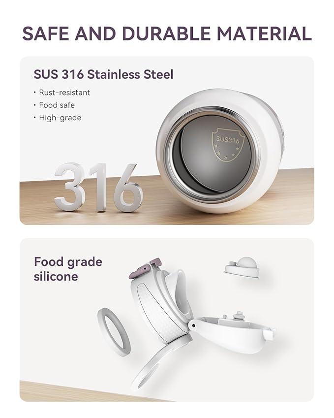 • 【Stainless Steel No Odor】We use SUS 316 stainless steel as the inner container but NOT plastic, so it's safe and no odor completely. You don't need worry about the smell or heath risk of any plastic bottle