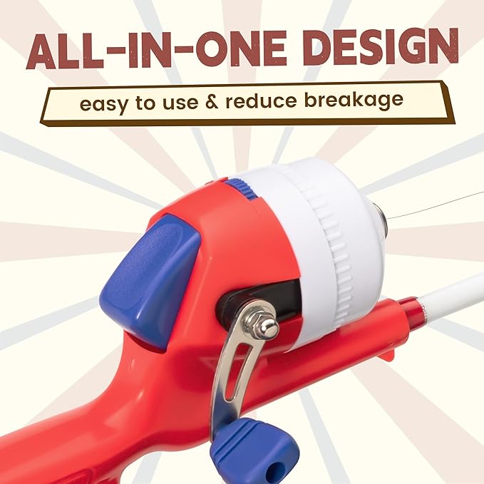 • Easy to use: WIDDEN kids fishing pole and reel combo are all in one piece, which reduces the chance of breakage and makes them easy to use. The lightweight and ergonomic design, combined with the pre-wound line, makes it simple for kids to cast and reel in their own catch. The fishing line is taken up in a tight state, which can avoid the fishing line from being entangled