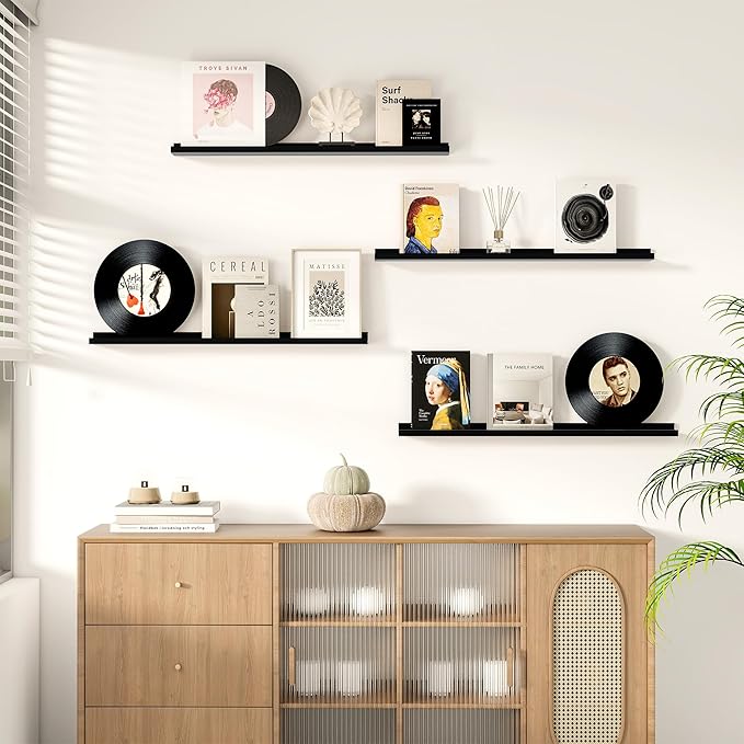 • 3.5" PICTURE LEDGE DESIGN: Ideal for displaying photos, artwork, or collectibles, these feature a thoughtful extremely narrow 3.5-inch width ledge design to prevent items from sliding forward, its mounting holes are spaced 16 inches apart for secure mounting to wall studs uncluttered aesthetic