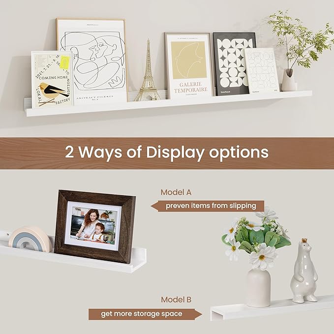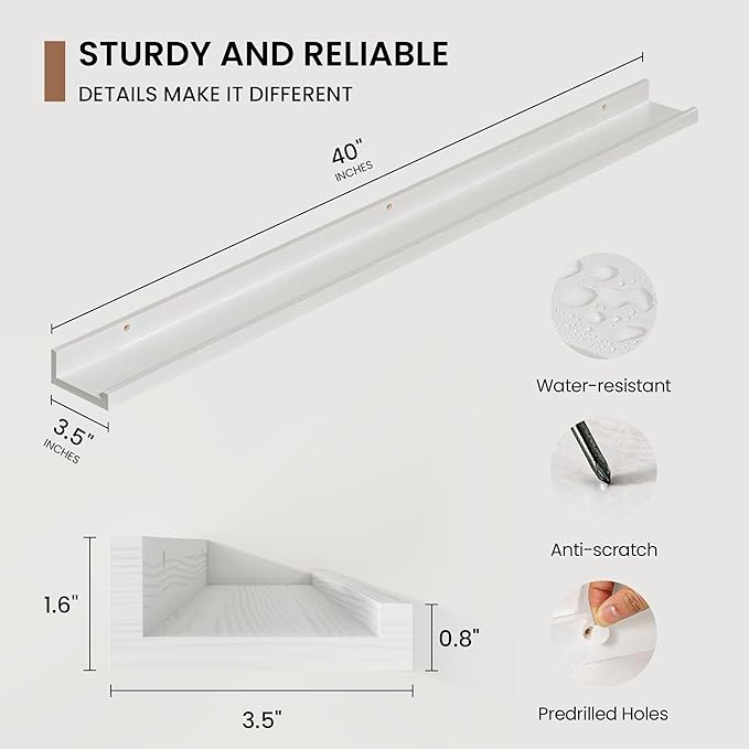 • Chic Minimalist Design: Solid pine wood picture ledge shelves available in multiple colors and sizes, these picture shelves complement any decor, from modern to farmhouse. Use them alone or in a gallery-style arrangement to create a stylish focal point