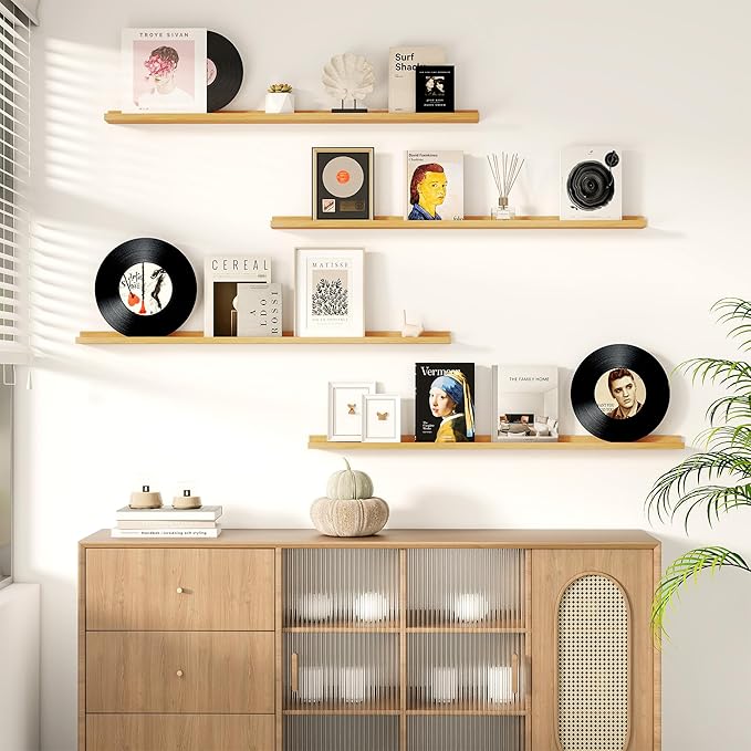 • NO ASSEMBLY REQUIRED: Fun Memories fully assembled long floating shelf set of 4 comes with the pre-drilled holes and necessary hardware including a mini level to make installation a breeze. The floating design creates a seamless, streamlined look, adding a touch of modern sophistication to your interior