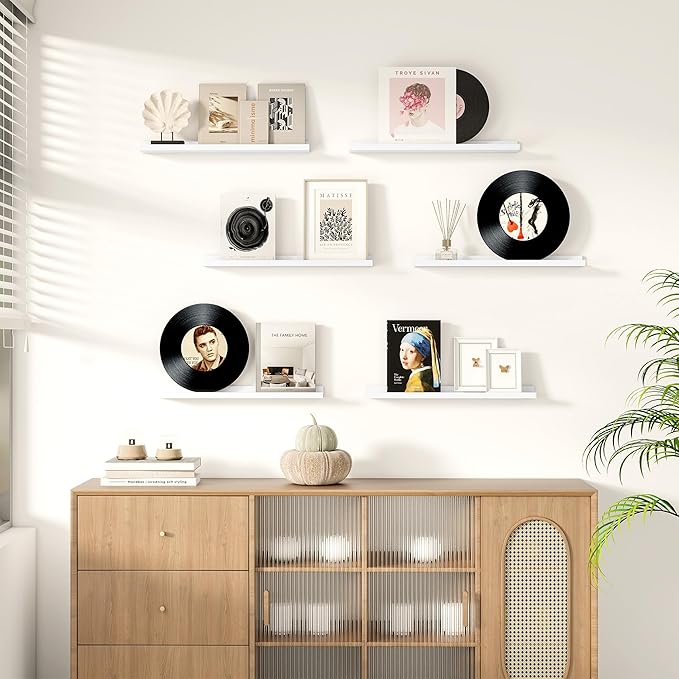 • 3.5" PICTURE LEDGE DESIGN: Ideal for displaying photos, artwork, or collectibles, these feature a thoughtful extremely narrow 3.5-inch width ledge design to prevent items from sliding forward, its mounting holes are spaced 16 inches apart for secure mounting to wall studs uncluttered aesthetic
