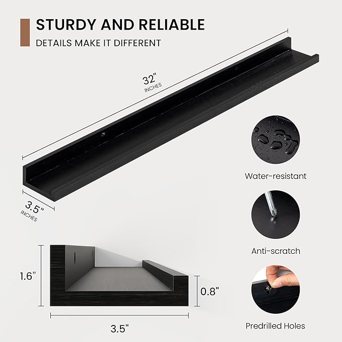 • Chic Minimalist Design: Solid pine wood picture ledge shelves available in multiple colors and sizes, these picture shelves complement any decor, from modern to farmhouse. Use them alone or in a gallery-style arrangement to create a stylish focal point