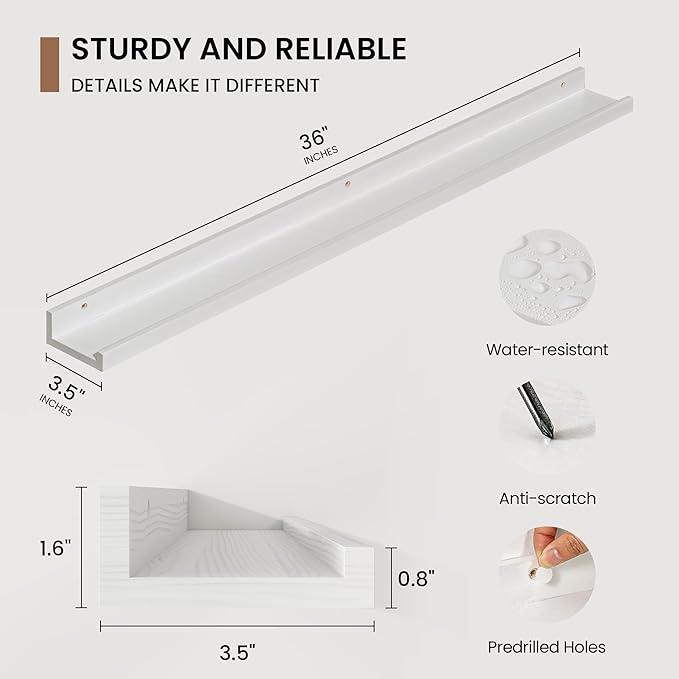 • Chic Minimalist Design: Solid pine wood picture ledge shelves available in multiple colors and sizes, these picture shelves complement any decor, from modern to farmhouse. Use them alone or in a gallery-style arrangement to create a stylish focal point