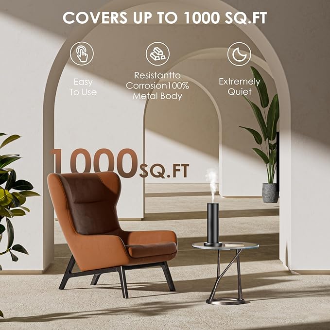 • Hotel Diffusers for Home: This waterless diffuser oil machine is designed for large spaces, providing continuous scent coverage up to 1000 sq. ft. without overwhelming the room, making it perfect for both home and office.