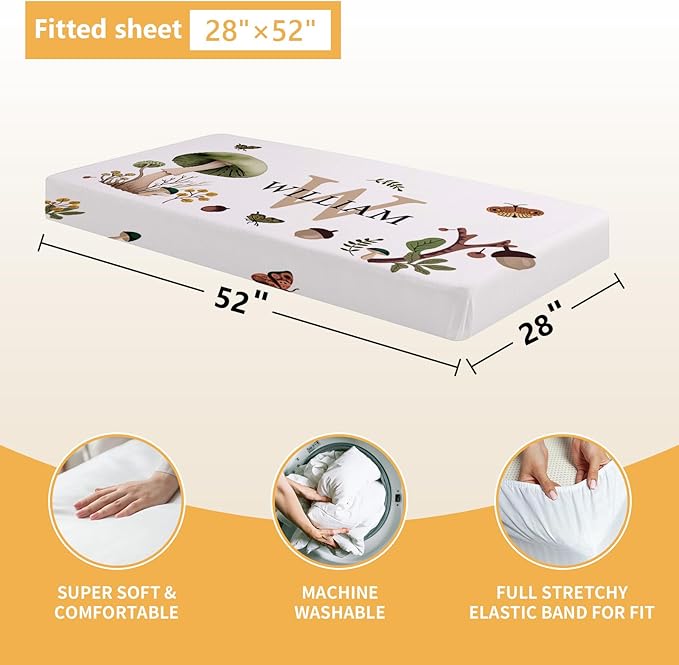 Personalized Crib Bedding Set, 5 Pcs Custom Nursery Bedding Sets with Name, Infant Bedding Set for Baby Boy Girl, Mushroom Double Layer Baby Crib Set, Babies Toddlers Kids Customized Gifts