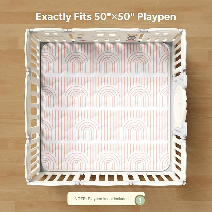 • EASY CLEANING & PORTABLE DESIGN: Parenting should be easy, and so should cleanup. With our baby play mat, simply wipe it clean with a mild detergent to remove dirt and stains, keeping your baby's play area fresh and hygienic. This 50x50 playpen mat is easy to fold and store, saving space when not in use. It's the ideal portable companion for your daily storage and on-the-go moments