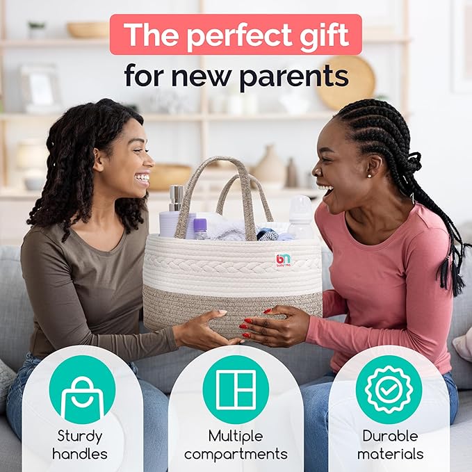 Rope Diaper Caddy - Storage for Baby and Toddler Items - Portable Cotton Organizer Easily Holds Diapers, Wipes, Clothing - Useful for Nursery, Bedroom (Beige, Regular)