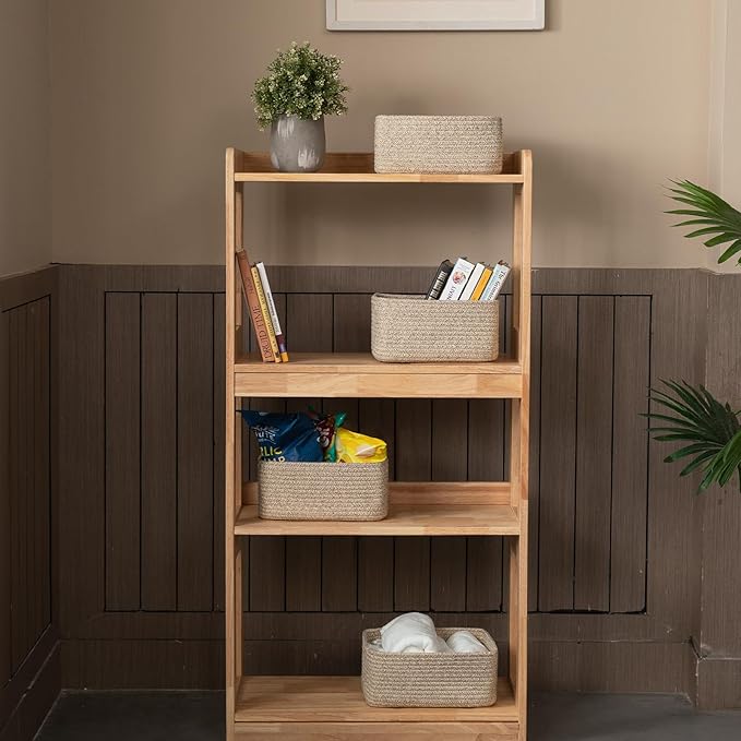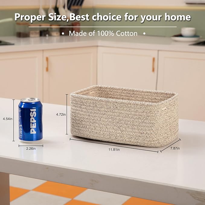 • [Cute & Small Decorative Storage Baskets]: These 4 Pack woven baskets measuring 11.81” x 7.87” x 4.72”, the fantastic woven rope baskets with mini size, which can work as shelf baskets for organizing, cute and practical for home decor, making your home more cozy and attractive