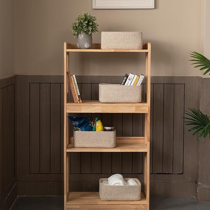 • [Cute & Small Decorative Storage Baskets]: These 4 Pack woven baskets measuring 13” x 8.66” x 5.11”, the fantastic woven rope baskets with mini size, which can work as shelf baskets for organizing, cute and practical for home decor, making your home more cozy and attractive