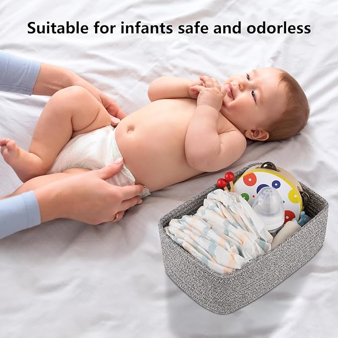 • [Premium Cotton Material]:Our cute baby storage baskets are made of high quality cotton hand-woven by workers, soft and odorless, no sharp edges and corners, very friendly to babies and pets, a good choice for baby-sitting baskets and dog or cat toy baskets