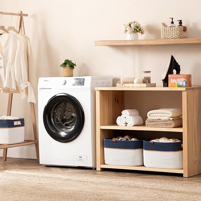 • Soft & Safe Materials: Our storage baskets are made of natural cotton ropes which has no chemical smell, soft and also has no sharp edges. They are hand-woven to be durable and sturdy, ensuring years of use.