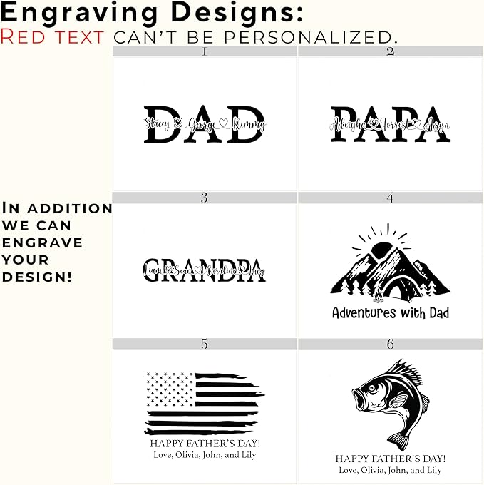• Customized: The walnut box is a unique gift for Daddy from kids. Choose from three designs and add kids' names to make the engraving extra special. Additionally, it can be engraved inside with different fonts we offer on the other side of the lid to create a surprise message for your dad.