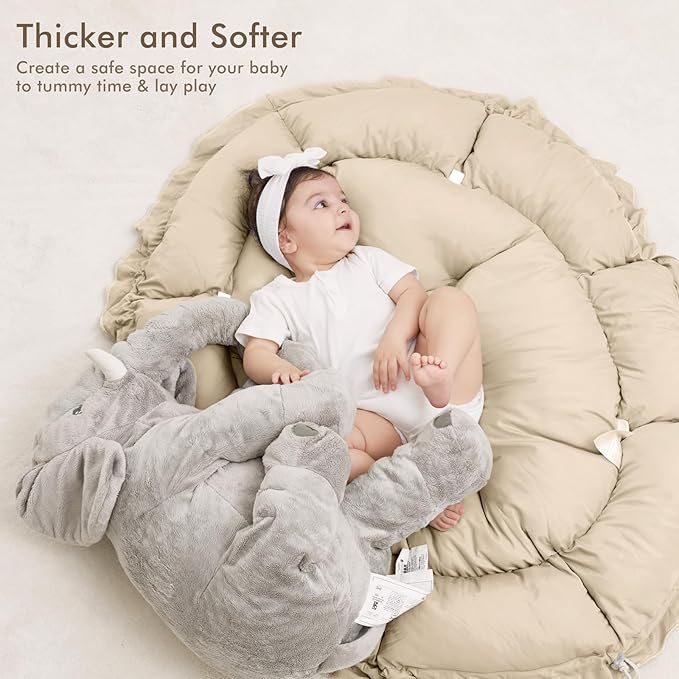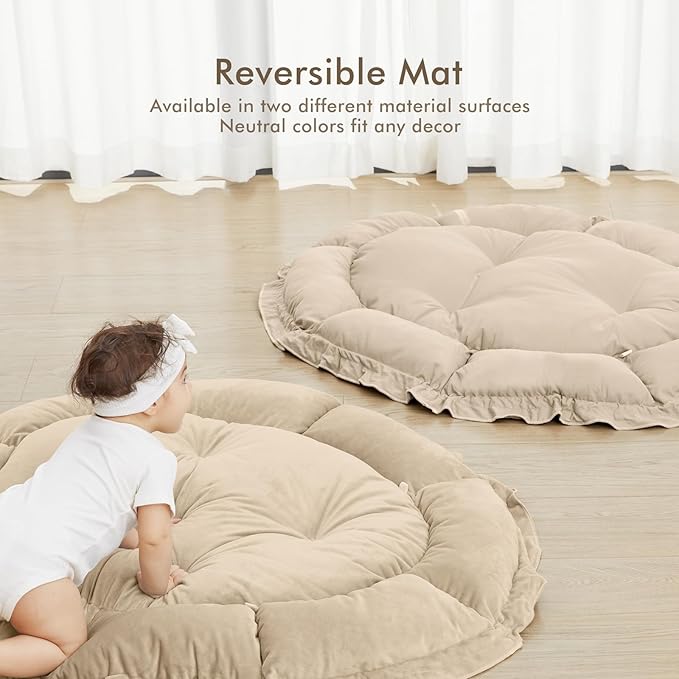 • THICKER & SOFTER: The reversible play mat crafted from premium plush material, offers a fantastic amount of cushion. Its neutral color scheme blends in with your home’s aesthetic so you can keep it out even after playtime is over.