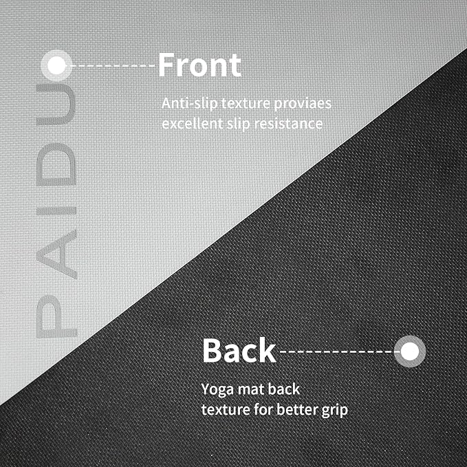 • HIGH QUALITY MATERIALS:Paidu yoga mat made from premium quality POE material, this material is the latest technological improvement to the traditional yoga mats. No latex, no PVC, or any heavy metal.This exercise mat for home workout is flexible, tear-resistant,and designed for long-lasting.durability.