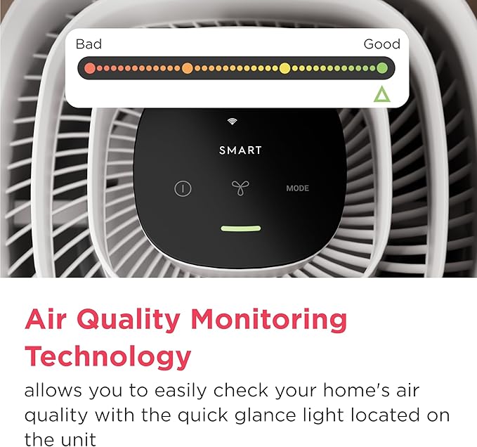 • Smart Air Quality Monitoring: The built-in light indicator lets you easily monitor your home’s air quality at a glance, while Smart Mode automatically adjusts settings based on air quality changes