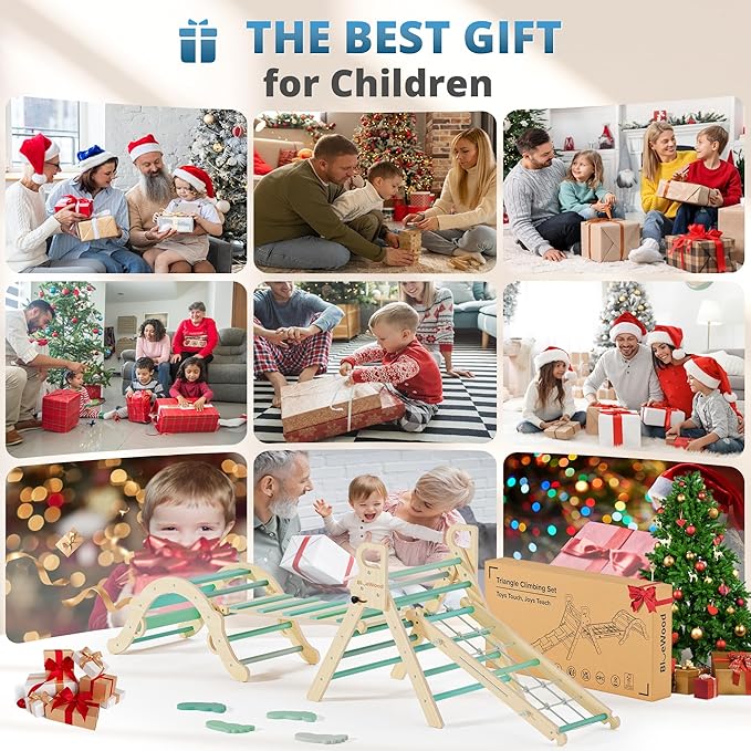 • Endless Play with Four-Piece Set: Our Pikler Set has four pieces: triangle climber, arch, ramp, and a rope ladder. It offers ten play combinations for endless fun. Designed with Montessori principles, it encourages exploration and learning