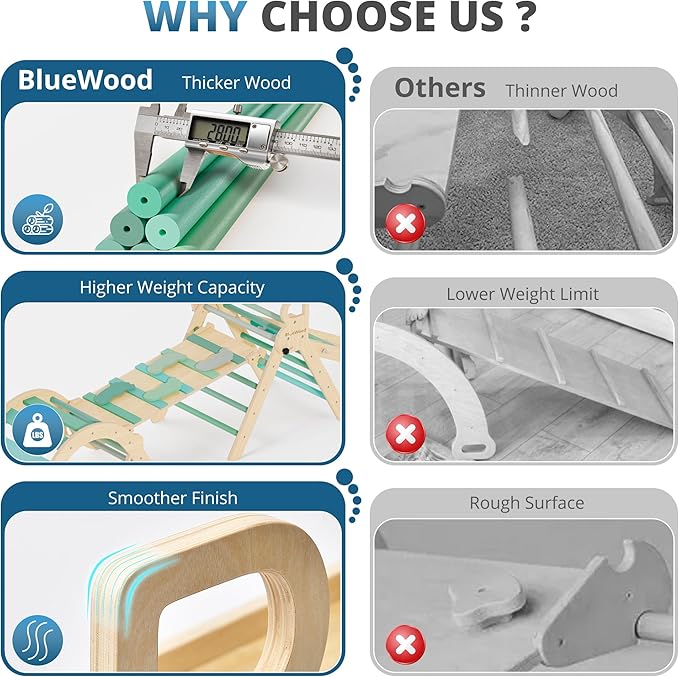 • Extra-Thick Design for Superior Stability: The extra-thick wood design supports up to 150 lbs, ensuring stability and safety. Its sturdy construction makes it durable for years of active play