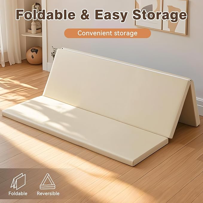 Foam Baby Play Mat: PU Leather Waterproof Kids Playmat - Trifold Floor Mat - Large Play Mat for Playpen Thick Pad Fodable Mattress Soft Toddler Mattress Infant Cushion for Preschool (Beige)