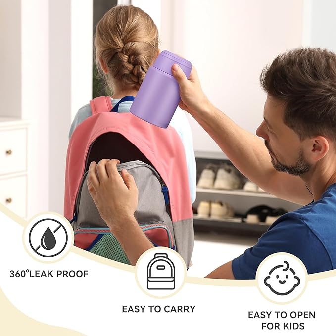 • FOOD-GRADE SAFETY & CPC CERTIFIED - The inside of kids thermo food container is made of high quality 316 stainless steel. Fully compliant with CPC standards to ensure child safe material. Double-layer vacuum insulation design, open lid venting for safe steam release. Durable, care for children's health.