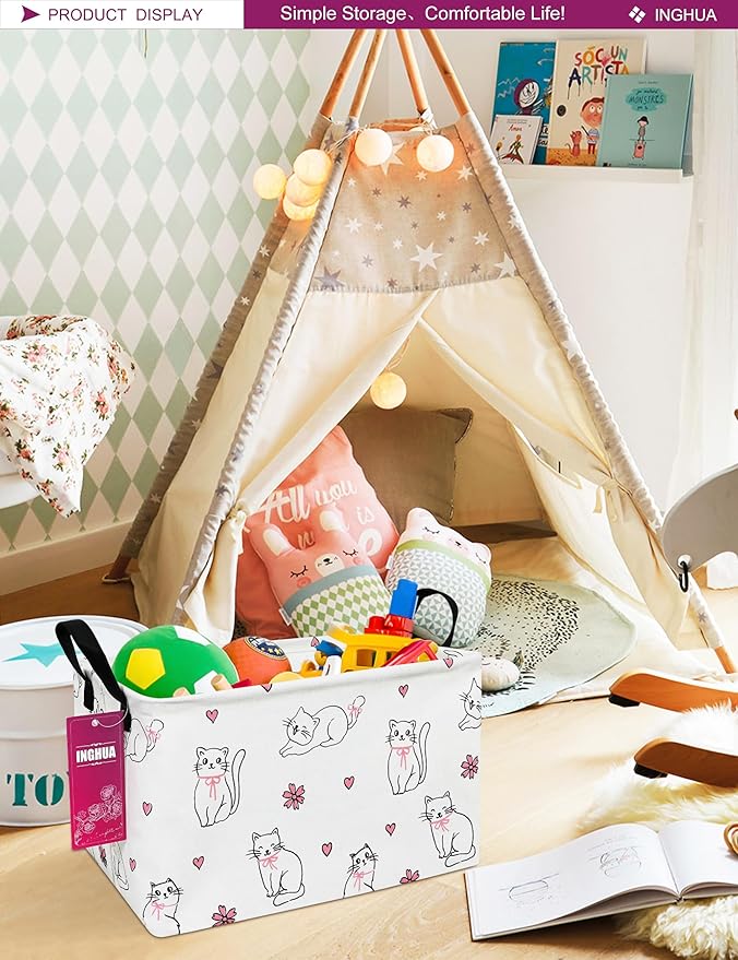 Rectangular Storage Basket Fabric Organizer Bin for Toys,Books,Clothes,Gifts,Pets-Perfect for Home,Office,Nursery,Dorm,Shelf(Rec-Love cat )