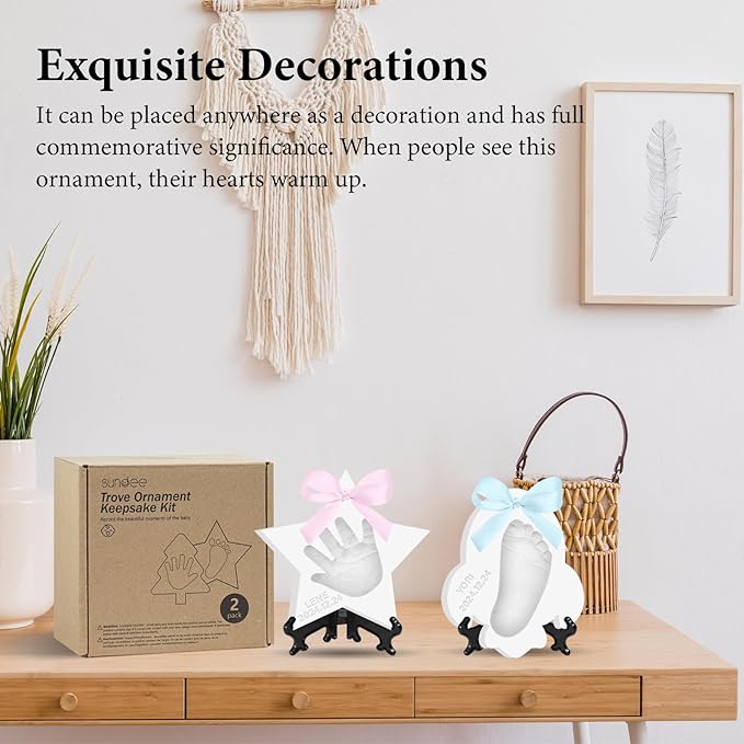 Baby Hand & Footprint Keepsake Kit - Personalized Handprint Footprint Ornament for Newborn Babies, New Mom Gifts, Baby Shower & Registry, Nursery Picture Frame, Pet Paw Print Ornament