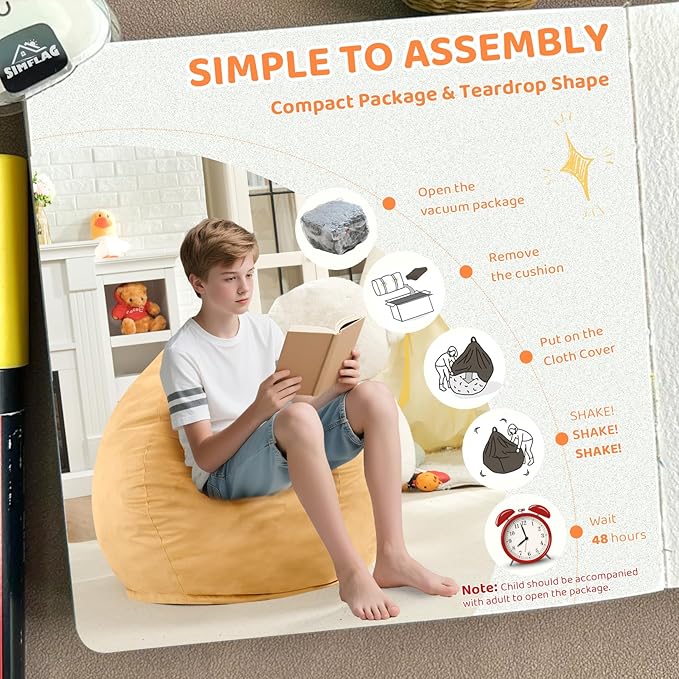 • WIDELY USE FURNITURE: Bean bag chairs is ideal for watching movies, studying, reading, gaming, napping, or just chilling, and is the perfect addition to every space, playroom, kid's room, living room, office, or school dorm.