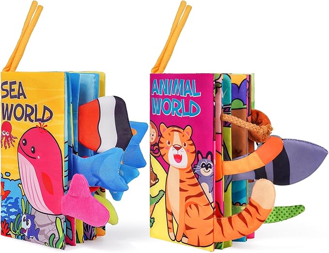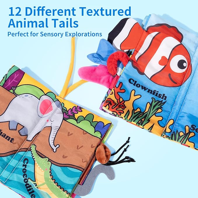• Textured Tails for Tactile Discovery: Each page features whimsical 3D tails with varied textures, making this baby crinkle book a sensory toy for tiny hands. From tactile exploration to teething relief, these cloth books for babies naturally boost motor skills and cognitive growth.