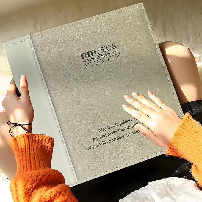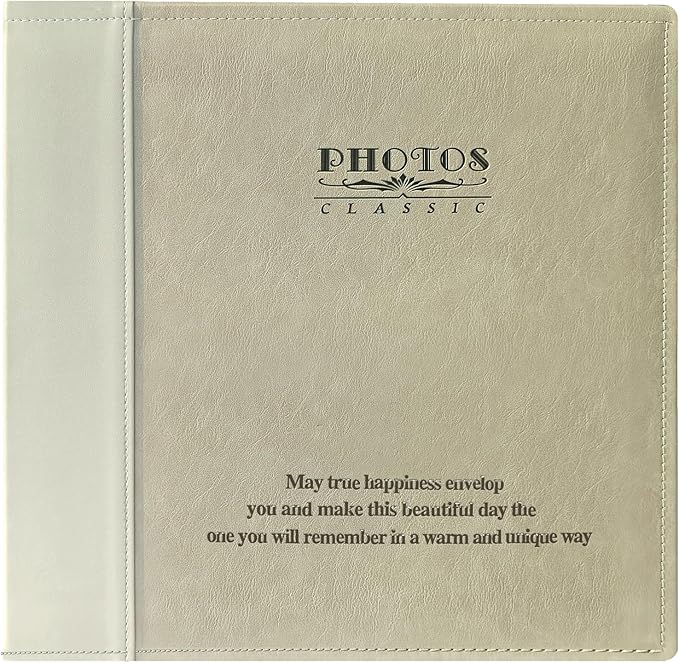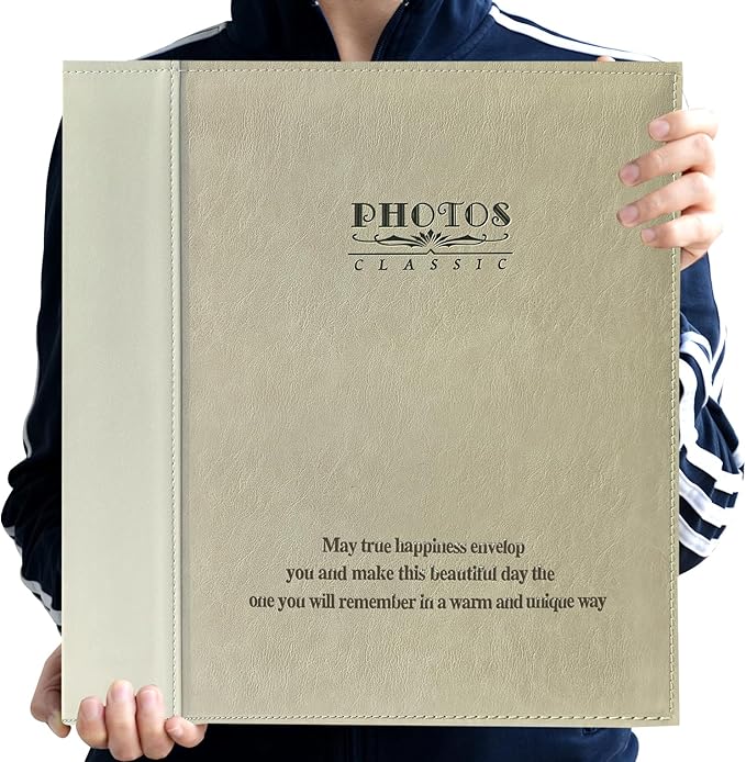 Magnetic Self-Stick Page Photo Album, Family Album, Leather Cover, Hand Made DIY Albums Holds 3x5, 4x6, 5x7, 6x8,8x10 Photos (Oatmeal)