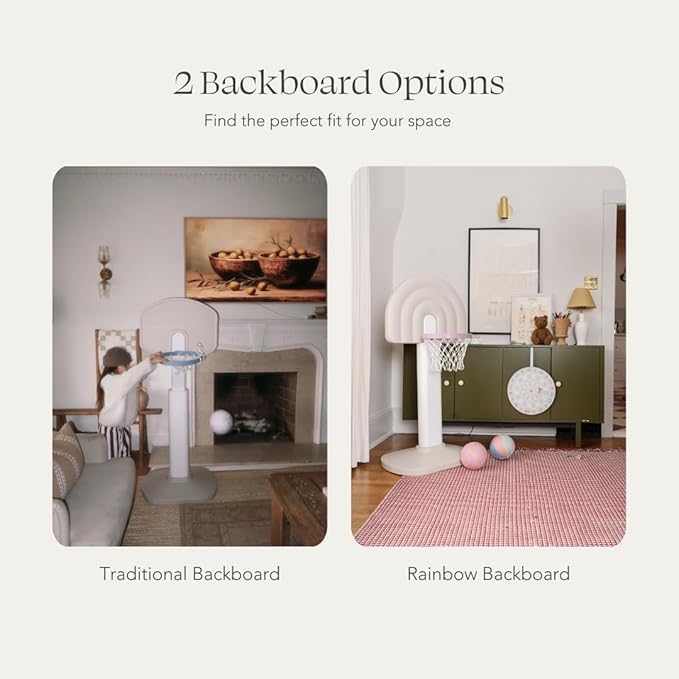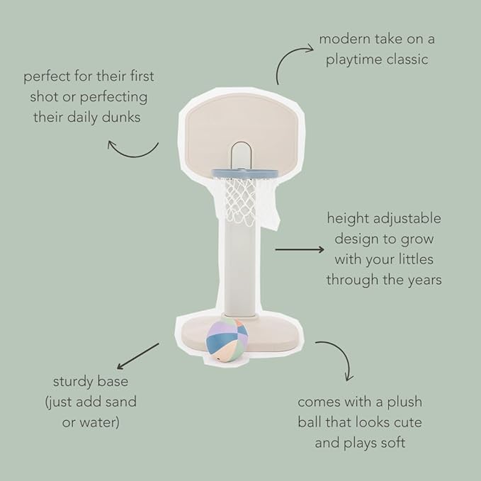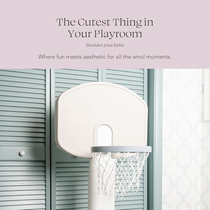 • Smol Hoop, Big Fun: A modern take on a playtime favorite. The basketball goal is guaranteed to bring big energy to your play space! Perfect for little athletes learning their first shot or older kids perfecting their daily dunks. Recommended for toddlers 18 months and up.