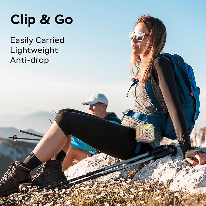• 【Grab and Go Clip-on Speakers】 The M12 portable size speaker, crafted for ultimate portability, making it your perfect on-the-go companion. Whether you're golfing, at the beach,clip on the bag even hiking running, its compact sleek and lightweight design, complete with a convenient hook, ensures easy carrying perfectly fitting into your backpack.