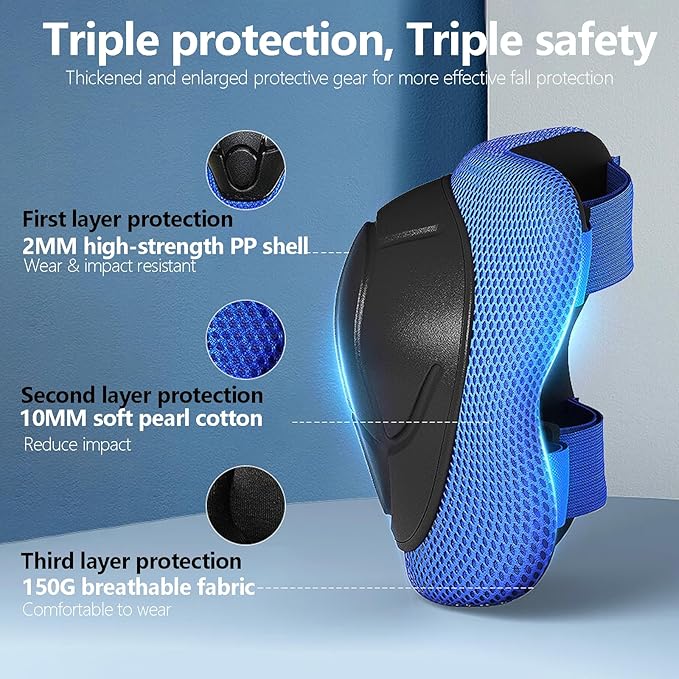 • 🛡️【PREMIUM SAFETY】kids helmets set are specially designed for kids head protection, complies with US CPSC Safety Standards,Child helmets are made with tough and durable Polycarbonate shell and high quality Expanded Polystyrene foam integrated molding,Toddler helmet have reflective markings on both sides and back, making exercise safer for children.