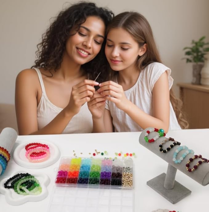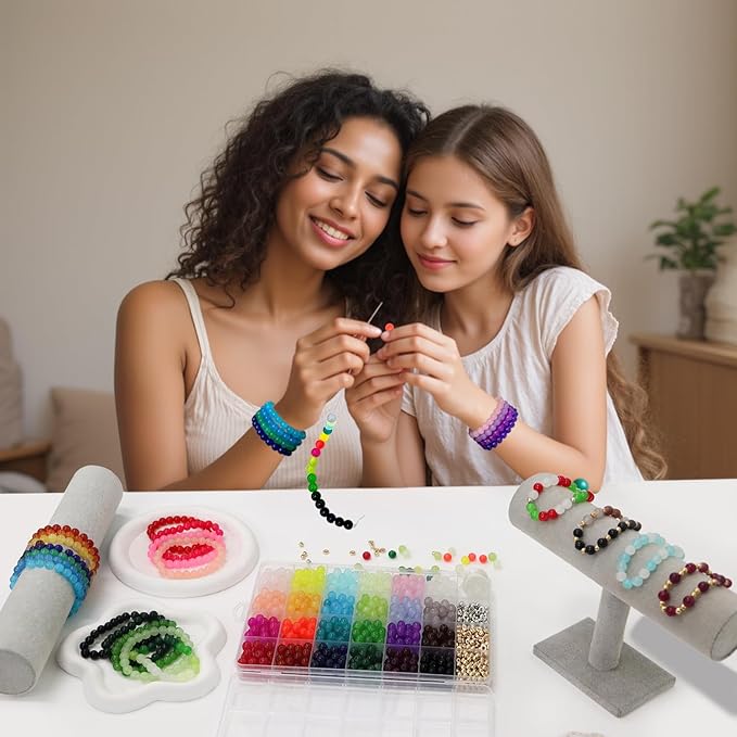 • GREAT GIFT: Our crystal glass beads bracelet making kit, featuring delightful glass bead charms, is an ideal present for those with a passion for handmade jewelry. It makes an excellent gift for kids, girl teens, and even adults eager to create their own jewelry pieces or craft jewelry for friends. The kit not only helps kids divert their attention from video games but also significantly enhances their creativity. Engaging in fun parent - child activities with this kit strengthens the bond between parents and kids.It serves as a wonderful gift for various occasions such as birthdays, Thanksgiving, Valentine's Day, Mother's Day, and Christmas.