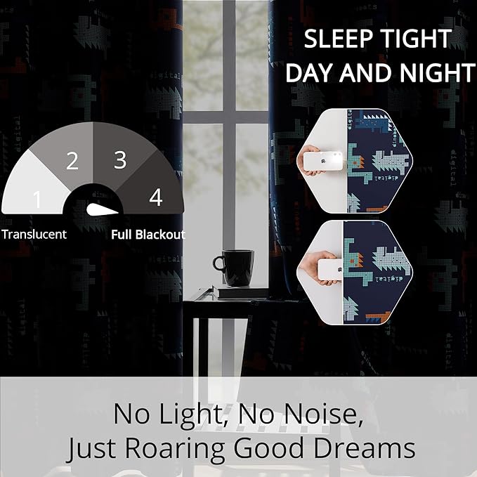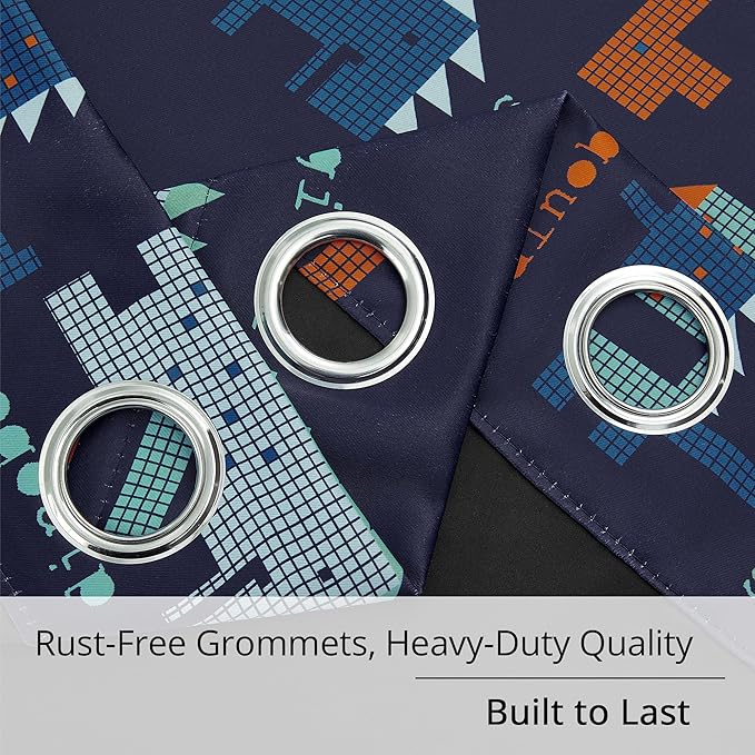 Kids Blackout Curtains - Pixel Dinosaur Curtains, 100% Blackout, 2 Panels, Each W52×L63, Thermal Insulated, Noise Reducing for Kids Bedroom, Bring a Playful and Retro Touch to Your Child’s Room