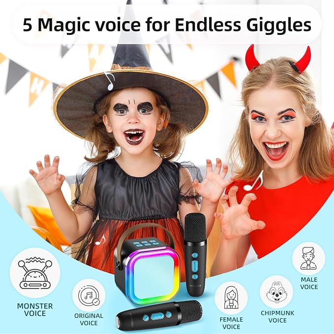 • Perfect Gift for Kids Aged 3–12. Whether it’s for a birthday, holiday, or just because, this mini karaoke machine is a crowd-pleaser. It's loved by both girls and boys, and brings joy, laughter, and unforgettable memories