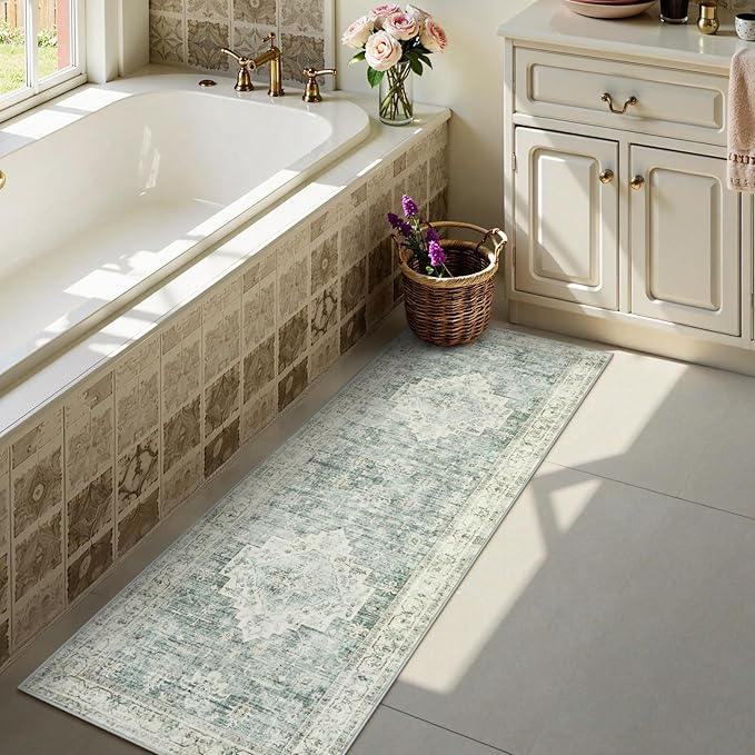 • Vintage Oriental Rug--Let classic and elegance meet in your home!Chic boho and retro kitchen runner rug featuring gorgeous patterns printed on soft & cozy short pile for a velvety touch. Neutral tones of rugs create a warm and lively atmosphere.