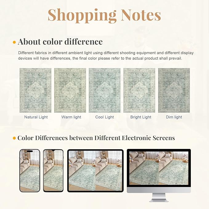 • Vintage Oriental Rug--Let classic and elegance meet in your home!Chic boho and retro living room rug featuring gorgeous patterns printed on soft & cozy short pile for a velvety touch. Neutral tones of rugs create a warm and lively atmosphere.
