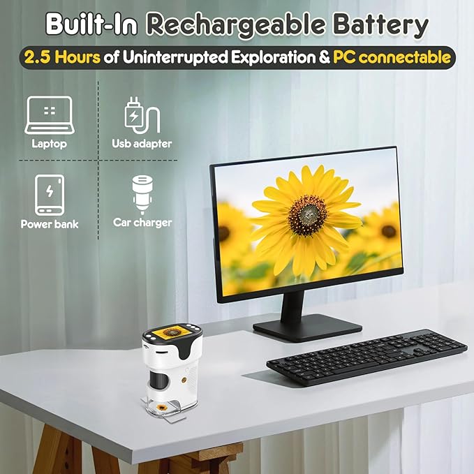 • Rechargeable: our digital microscope built-in with large capacity rechargeable battery. can be used continuously for 2.5 hours after fully charged, the charging cable included.
