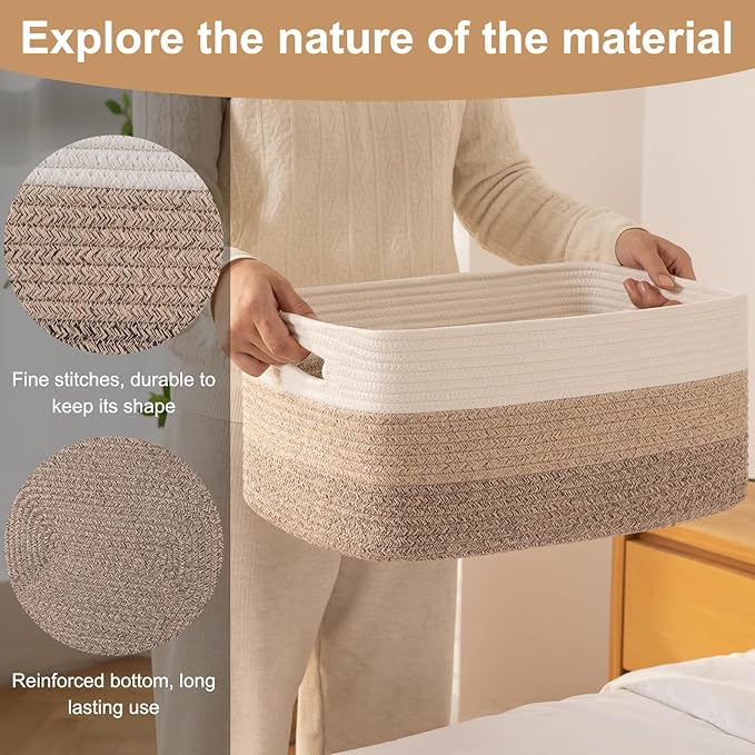 • Soft and Durable: Hand-stitched from high-quality natural cotton rope. Our baskets are very soft and baby-friendly. Seamless design, with no odor or sharp edges, not easy to tear, Great for nurseries storage and closet organization