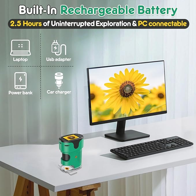 • Rechargeable: our digital microscope built-in with large capacity rechargeable battery. can be used continuously for 2.5 hours after fully charged, the charging cable included.